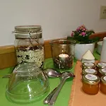 Pension Landhaus Fischer מגיש ארוחת בוקר קונטיננטלית בבקרים.